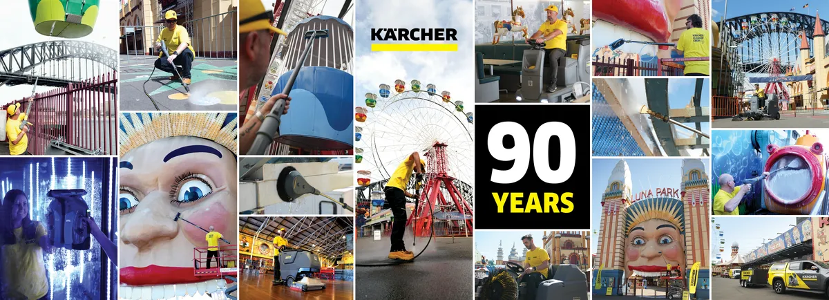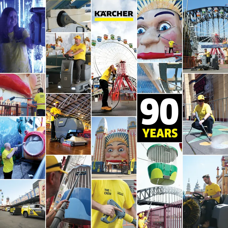 Two 90-year-old icons, one day of bringing back the WOW. To celebrate our 90th anniversary, Kärcher teamed up with Australia's iconic Luna Park, Sydney. We put nine decades of cleaning innovation to work, restoring the shine to its world-famous smile and revitalising key areas across the park