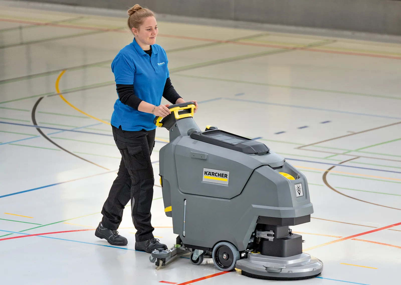 Wanneer schoenen een spoor achterlaten: De Kärcher polijstmachines doen vloeren opnieuw schitteren. Doordat ze batterij aangedreven zijn, kunnen ze ook worden gebruikt tijdens de normale werkuren.