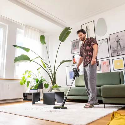 Comment se fait-il que la poussière soit déjà de retour? Une question que beaucoup d'entre nous se posent régulièrement en parcourant du regard leur logement. Alors que la maison vient tout juste d'être nettoyée, une couche de poussière très fine se redépose sur les meubles, les plantes, les livres et le sol en un rien de temps. Le fait est que dans nos pièces d'habitation, la poussière est soulevée en permanence, se propageant ainsi très largement. Si nous ne pouvons pas éviter ce phénomène, nous pouvons toutefois y remédier rapidement. Les nouveaux modèles d'aspirateurs sans fil vous permettent d'éliminer la poussière indésirable en un tour de main, sans effort et avec une liberté de mouvement maximale.