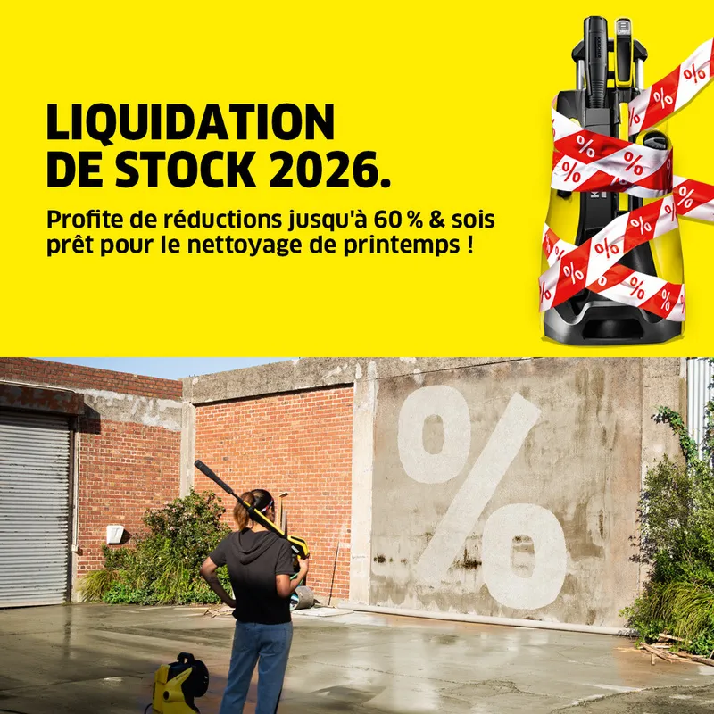 Nous t'invitons cordialement à notre GRANDE LIQUIDATION DE STOCK 2026 au Kärcher Center Genève. Le vendredi 24 avril 2026, nous t'attendons de 08h00 à 15h00 à Satigny. Profite de prix spéciaux attractifs sur de nombreux appareils et passe nous voir à notre stand de restauration, car nous avons un événement à fêter : LES 10 ANS DU KÄRCHER CENTER GENÈVE.