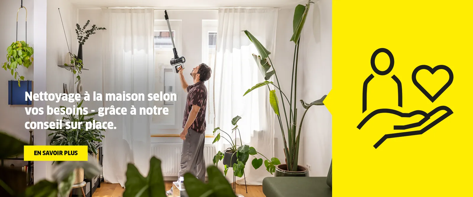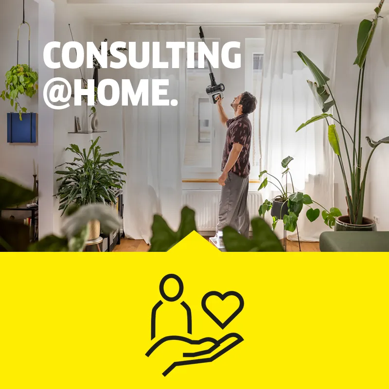 Seulement vendre des appareils? Absolument pas! Nous savons, en effet, que le nettoyage et l'entretien deviennent beaucoup plus faciles avec le bon savoir-faire. Et vous, vous devriez pouvoir en profiter: vous recevez avec notre Consulting @ Home un concentré de connaissances directement chez vous. Demandez-nous ce que vous voulez savoir depuis longtemps, dites-nous ce dont vous avez besoin et ce que vous voulez. Avec Consulting @ Home, nos experts vous conseilleront et vous soutiendront en matière d'intérieur, d'extérieur & de jardin – directement chez vous.