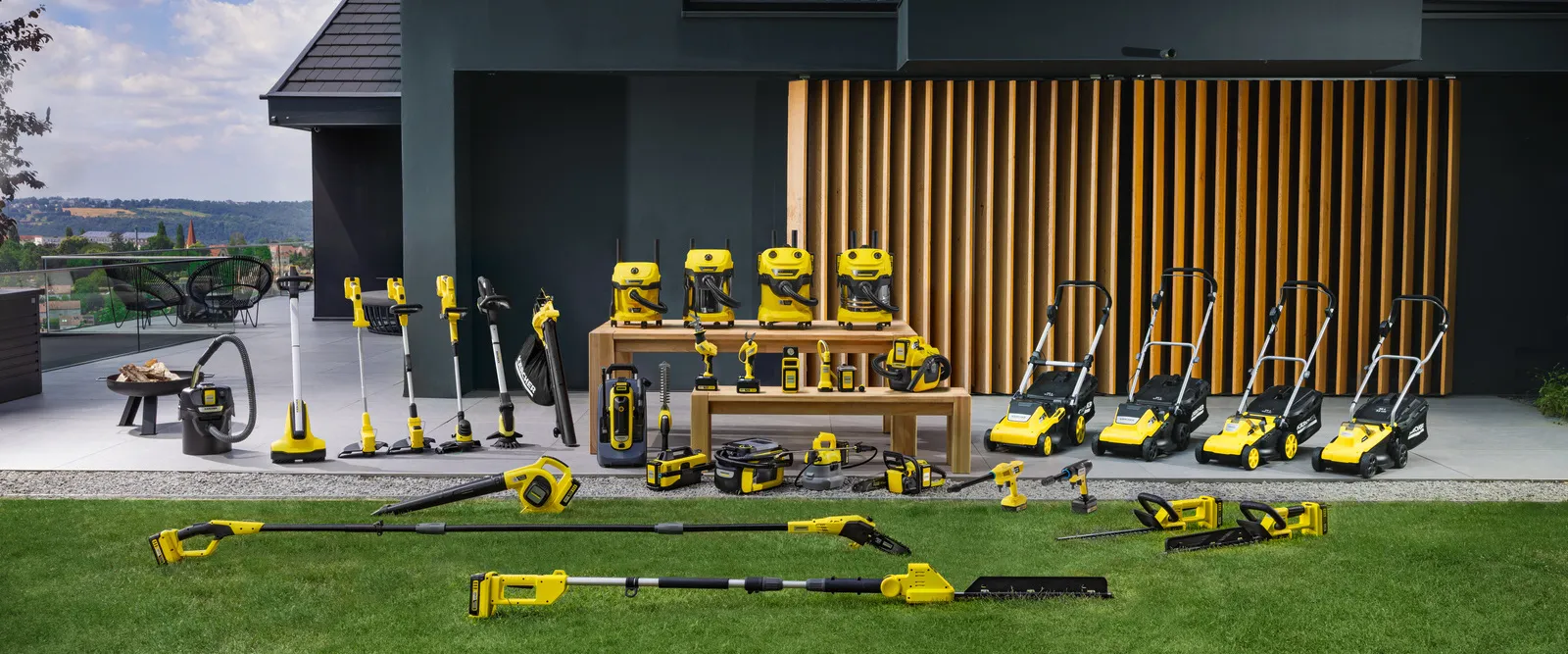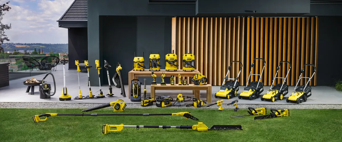 Die 18 V Kärcher Akkuplattform umfasst kompakte und handliche Produkte zur Pflege und Reinigung kleinerer/mittlerer Gärten und Oberflächen wie unter anderem Hartflächen und textile Beläge.