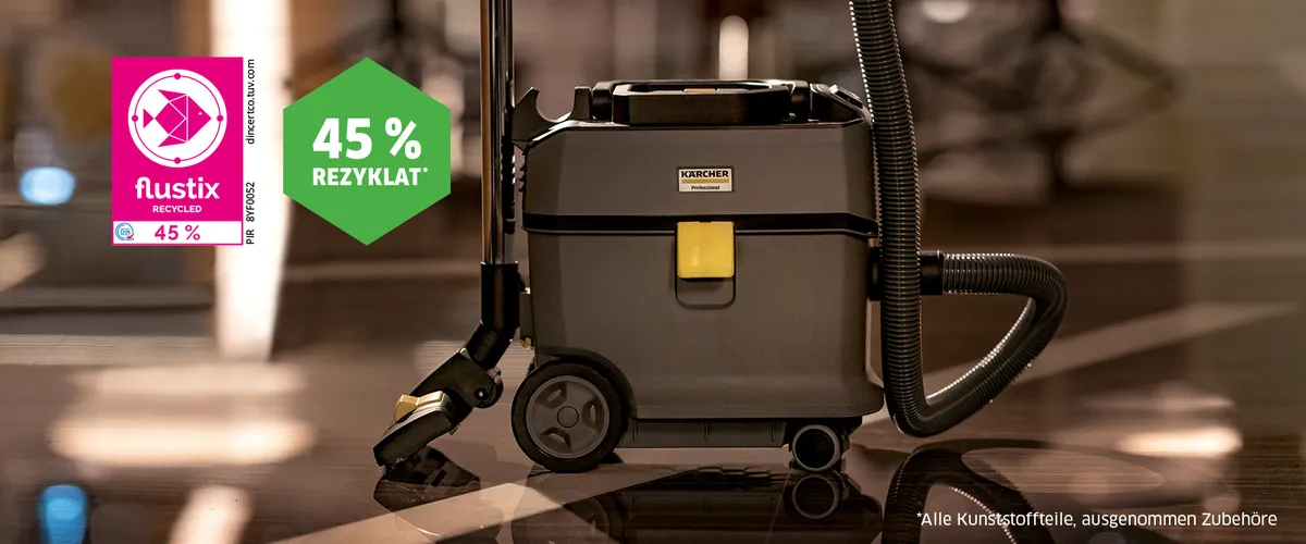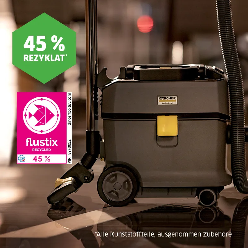 Nachhaltig und stark: Die neue modulare T-Range überzeugt durch eine klare Botschaft: Sie ist umweltfreundlich und innovativ. Die Geräte bestehen zu 45% aus recyceltem Kunststoff. Mit dieser Reihe setzen wir auf echte Nachhaltigkeit, aussergewöhnliche Saugkraft und Langlebigkeit. Durch den Einsatz von Recyclingmaterial reduzieren wir den Energieaufwand bei der Herstellung, schonen wertvolle Rohstoffe und sparen pro Gerät bis zu 2,0 Kilogramm Neukunststoff ein. Der verwendete Recyclingkunststoff stammt aus Produktionsabfällen wie Ausschuss, Verschnitt und Überschuss. So wird Müll vermieden und natürliche Ressourcen werden eingespart. Dabei bleibt die Qualität der robusten T-Range kompromisslos erhalten: Der Recyclingkunststoff bietet dieselben hervorragenden Eigenschaften wie Neukunststoff.