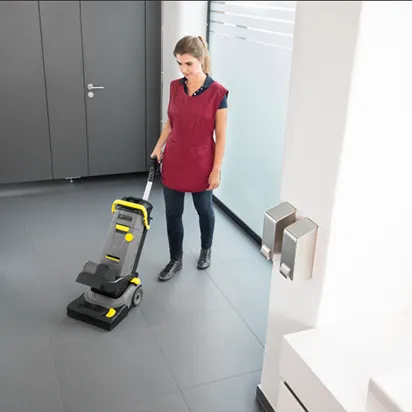 Es una máquina menos robusta y apta para supermercados y minimarkets, pequeños hoteles o posadas y pequeños comercios. Estas lavadoras pueden limpiar áreas pequeñas de forma profesional muy rápidamente, con el conductor realizando todas las tareas a pie. En comparación con la limpieza manual, estas máquinas promueven mucha más eficiencia y ahorro.