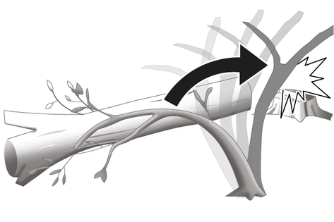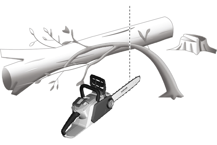 Gerilim altında bulunan bir dalı keserken bunun geri sıçrayacağını göz önünde bulundurun. Ahşap liflerdeki gerilim serbest kalırsa gerilen dal kullanıcıya isabet edebilir ve/veya motorlu testerenin kontrolü kaybedilebilir.