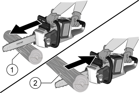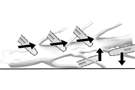 Kärcher, ilk kullanımda ağaç gövdelerinin testere tezgahı üzerinde kesilmesini önerir.