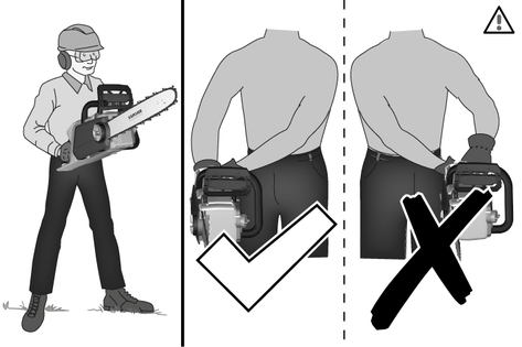 Motorlu testereyi kapalıyken ön tutamağından tutarak, testere zinciri vücudunuzdan uzakta olacak şekilde taşıyın. Motorlu testereyi taşırken veya saklarken her zaman koruyucu kapağını kapatın. Motorlu testere dikkatli kullanılırsa çalışan testere zincirine yanlışlıkla dokunma olasılığı azalır.
