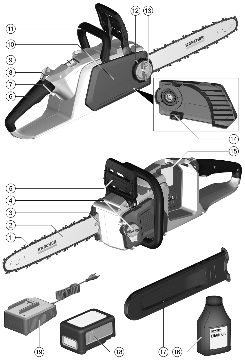 Cihaz bir aydan uzun süre depolandığında, paslanmayı önlemek için zinciri yağlayın.
