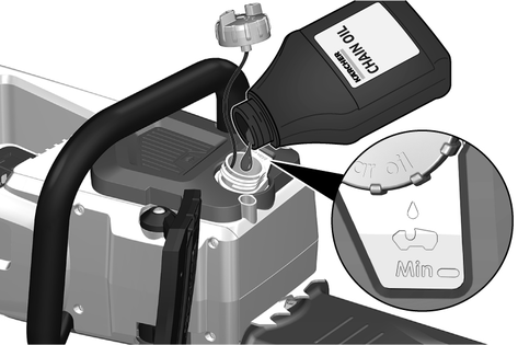 Zincir yağı seviyesini kontrol edin, gerekirse zincir yağı ilave edin (bkz. Bölüm Zincir yağı haznesinin doldurulması).