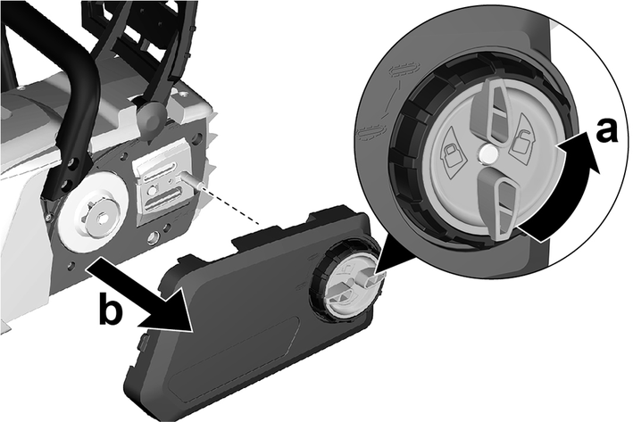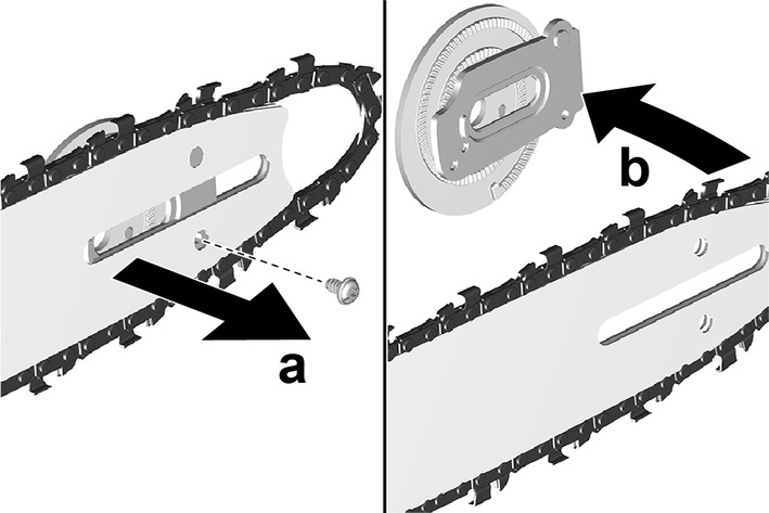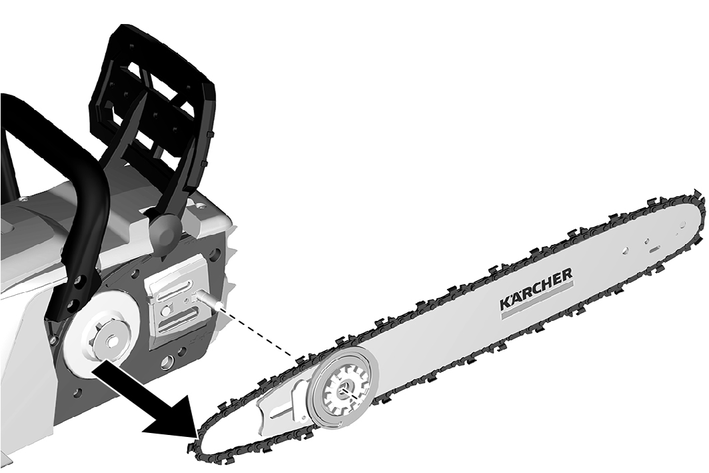 Kılavuz rayını, zincir gerdirme tertibatını kullanarak çıkarın.