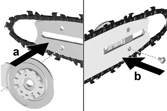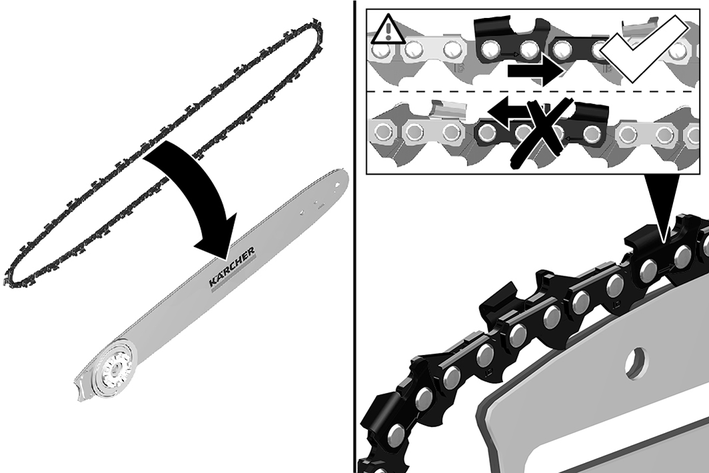 Yeni zinciri kılavuz rayına yerleştirin. Bu sırada zincirin dönme yönüne dikkat edin.