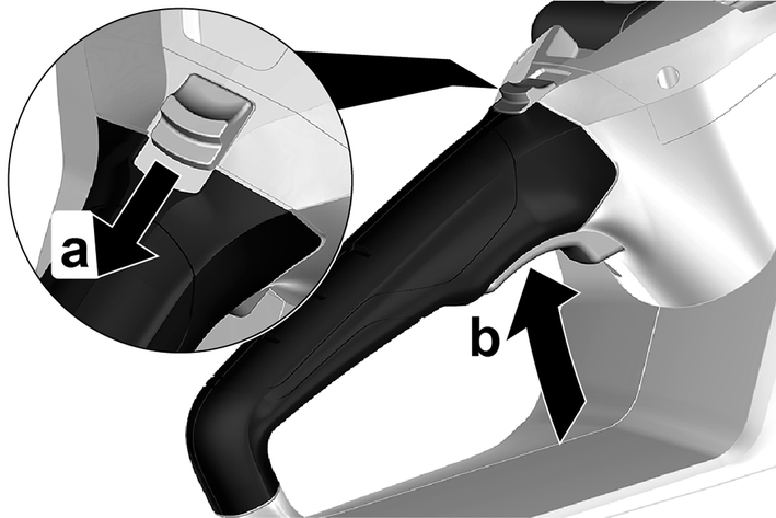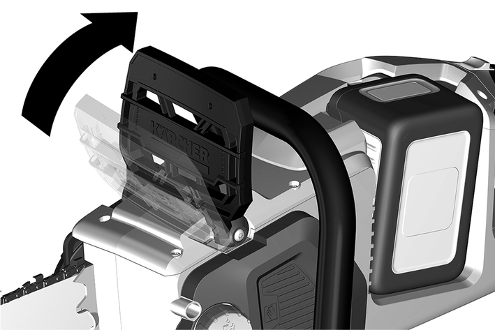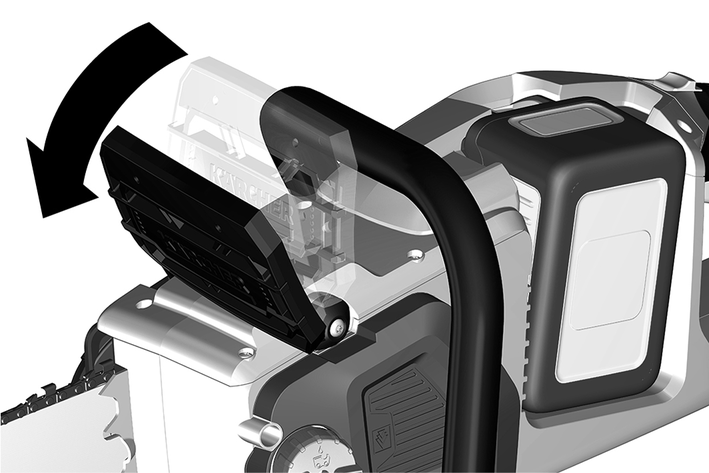 Cihaz çalışırken ön tutamaktaki elinizi, el koruması / zincir freni kolu elin arkasıyla kılavuz rayına doğru itilecek şekilde çevirin.