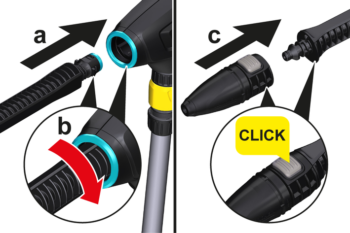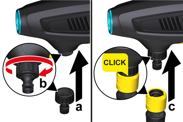 Bahçe hortumunu (teslimat içeriğine dahil değildir) su bağlantısındaki kavramaya takın.