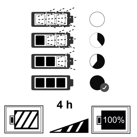 Аккумулятор полностью заряжен через 4 часа.