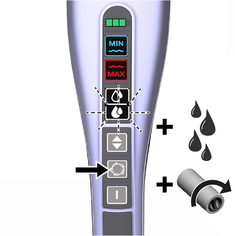 Подождать прибл. 2 минуты, затем процесс промывки завершен и индикатор на дисплее больше не светится (см. главу Очистка вибрационной головки путем промывки).