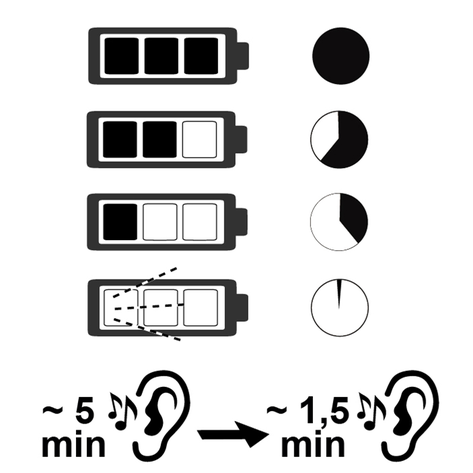 После зарядки аккумулятора 3 светодиодных индикатора продолжают постоянно светиться в течение 60 минут. По истечении этого времени светодиодные индикаторы гаснут.