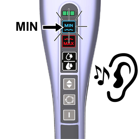 В баке для чистой воды нет воды. Индикатор «MIN» (синий) на дисплее светится и раздается звуковой сигнал.