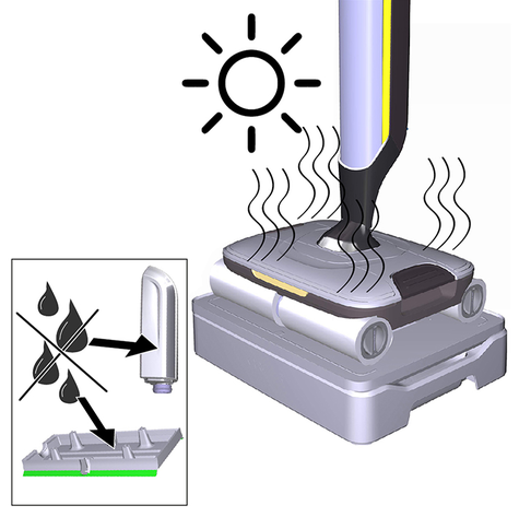 Не перемещать устройство по напольной решетке систем конвекторного отопления. Устройство не может поглощать вытекающую воду при его перемещении по решетке.