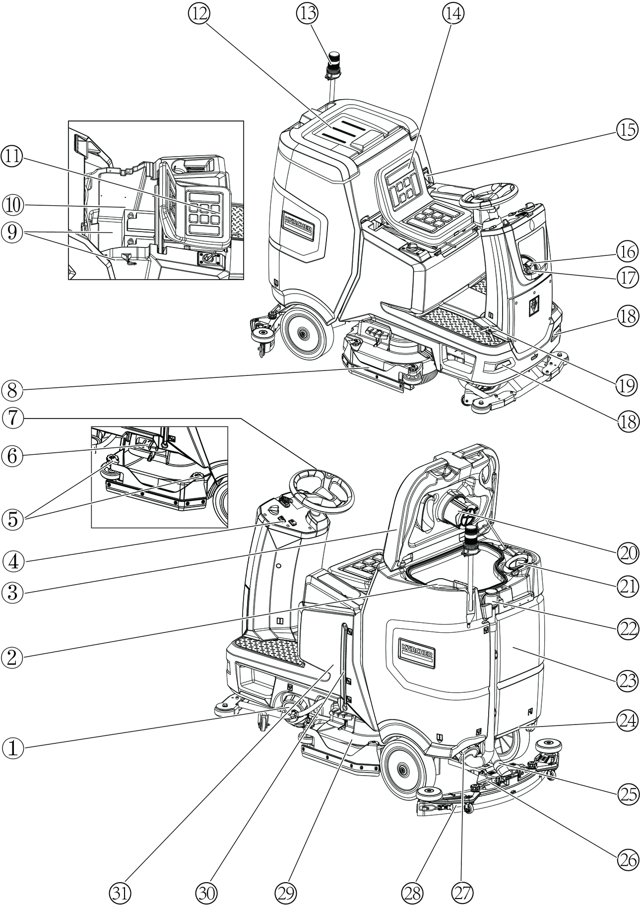 Эта поломойно-всасывающая машина предназначена для влажной очистки и полировки ровных полов.
