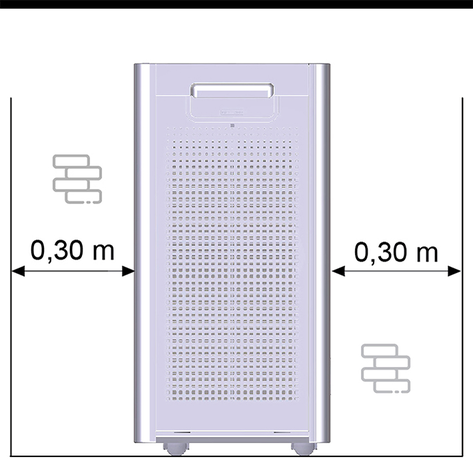 Cihazı düz bir zemin üzerine bırakın. Her iki tarafta 0,30 m'lik bir mesafe olduğundan emin olun.