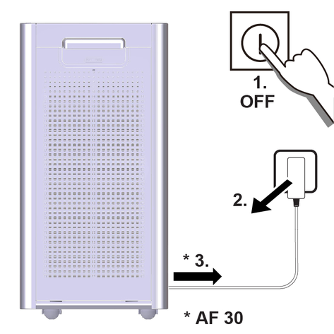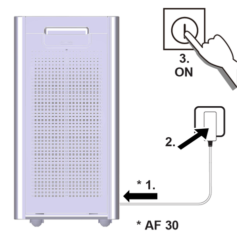 AF 30: Güç beslemesi cihaz fişini cihaza takın.