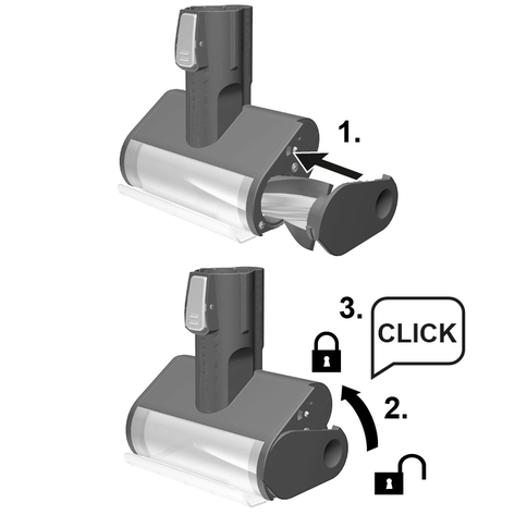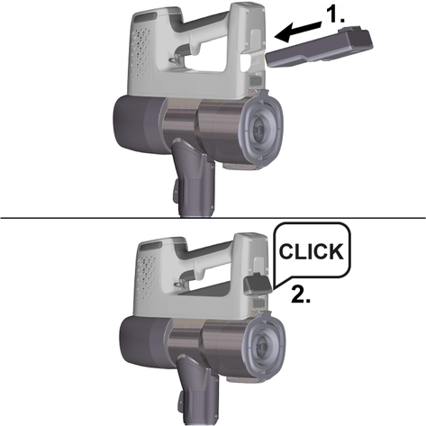 Toz haznesini, el cihazındaki kanca toz haznesindeki yuvaya oturana kadar yukarı doğru itin.