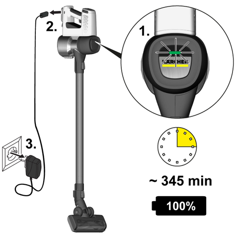 Aküyü sadece birlikte teslim edilen orijinal şarj cihazı veya KÄRCHER tarafından onaylanmış şarj cihazıyla şarj edin.
