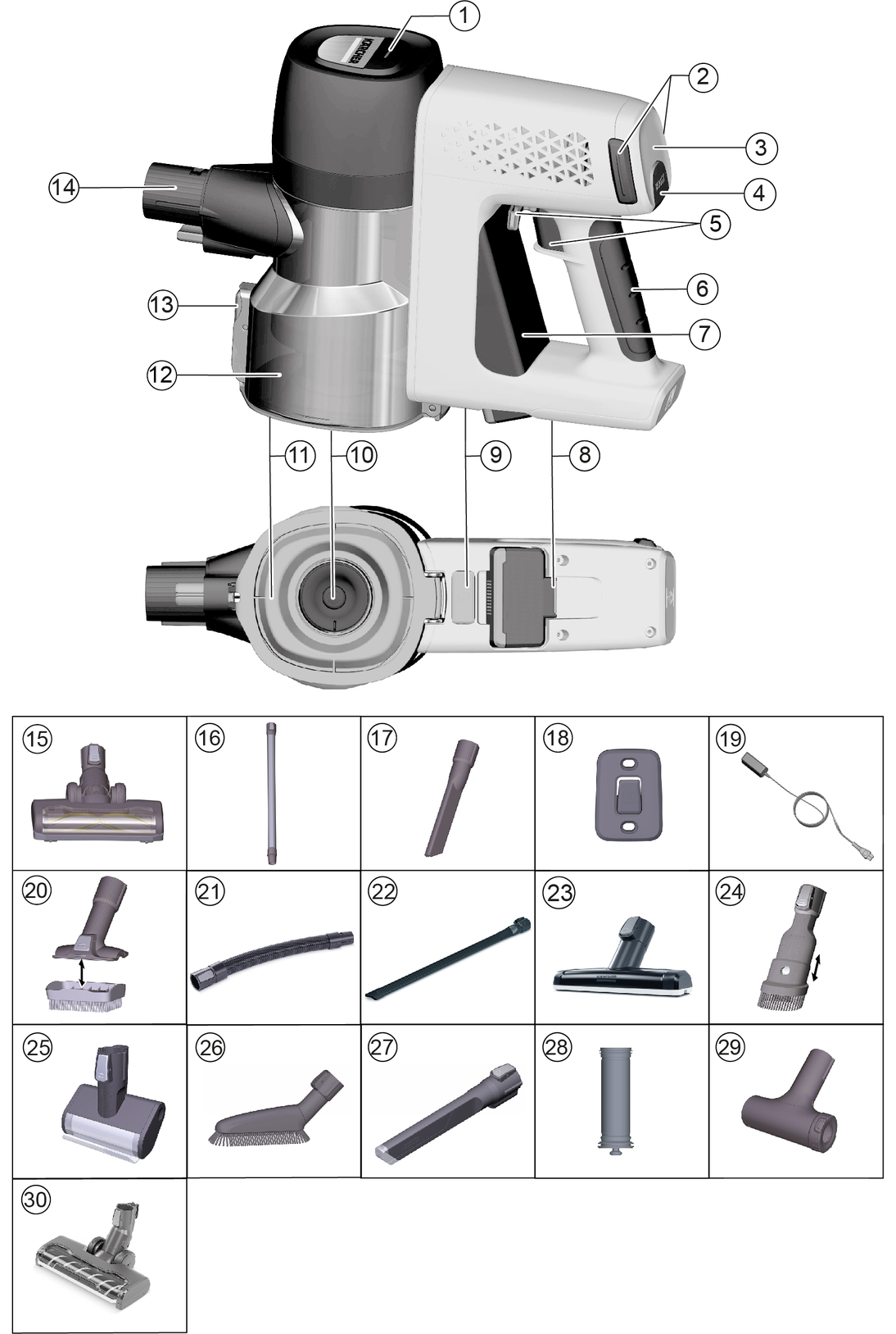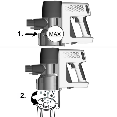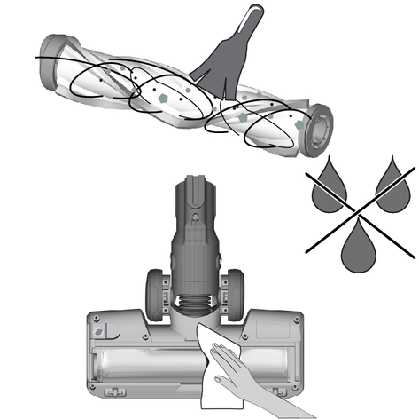 Temizlik sırasında kabloların veya kontakların ıslanmadığından emin olun.Toz haznesini yumuşak bir fırça veya hafif nemli bir bezle temizleyin. Siklon filtre akan su altında temizlenebilir.