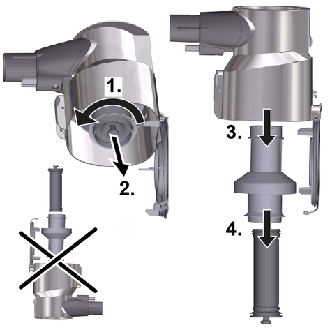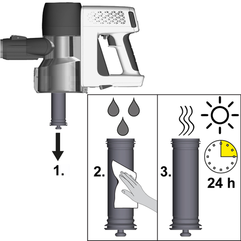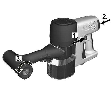 Filtre temizliği için cihazı daima aşağı doğru tutun.Siklon filtreyi saat yönünün tersine çevirerek toz haznesinden çıkarın.