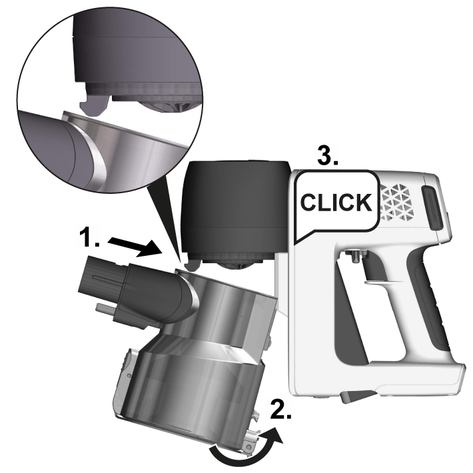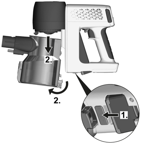 Toz haznesini el cihazına takın.