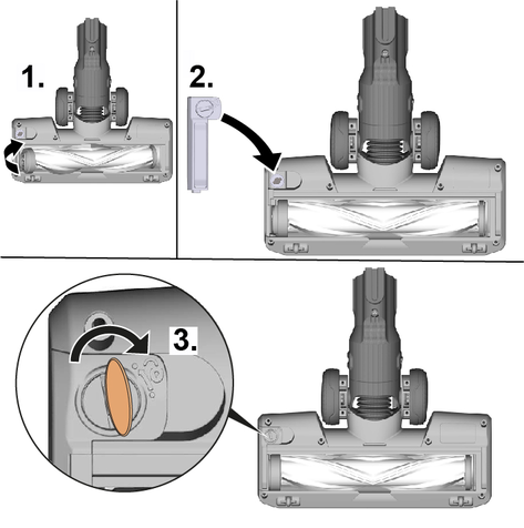 Fırça merdanesini, kapak yerine oturana kadar yukarı iterek fırça açıklığına eğimli bir şekilde ve tamamen yerleştirin.