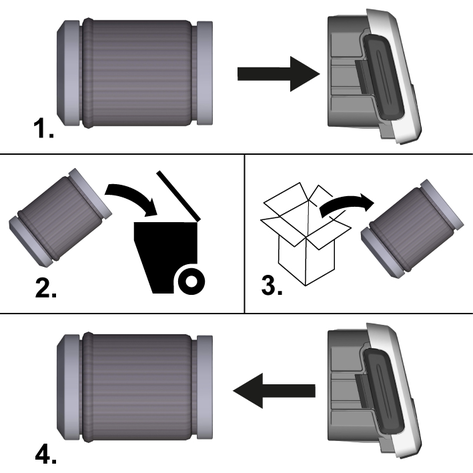 Kuru egzoz havası köpük filtresini yerine oturana kadar cihaza yerleştirin.