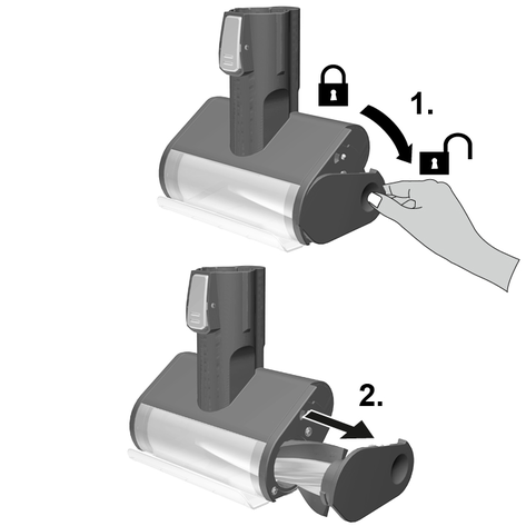 Fırça merdanesi kapağının/tutucusunun kilidini bir madeni para veya başka bir nesneyle açın ve çıkarın.