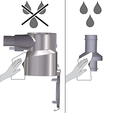 Kalıntıları örneğin bir fırça ile çıkarın. Dolaşık iplik veya saçlar makasla dikkatlice kesilebilir.