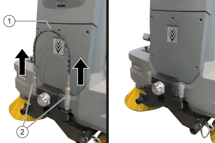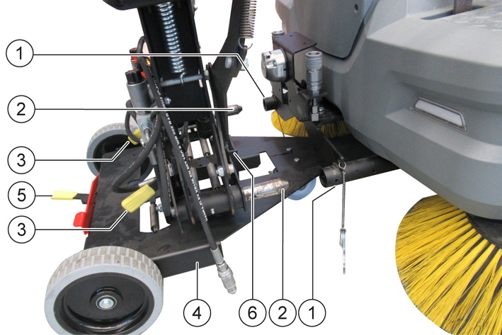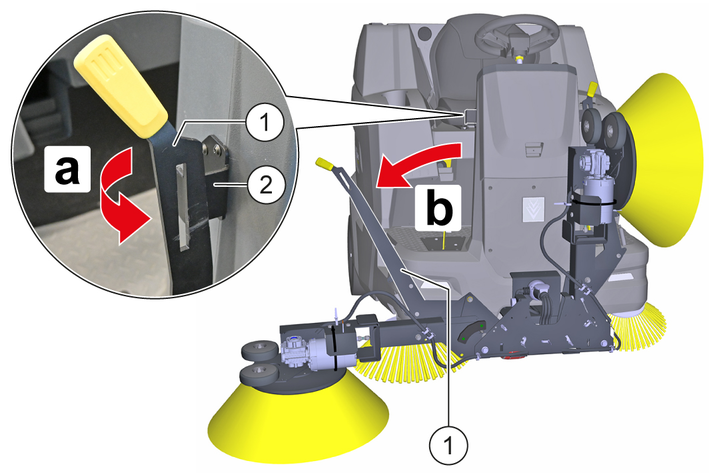 İlave yan süpürgelerin yukarı kaldırılması işlem sırası tersine uygulanarak gerçekleştirilir.