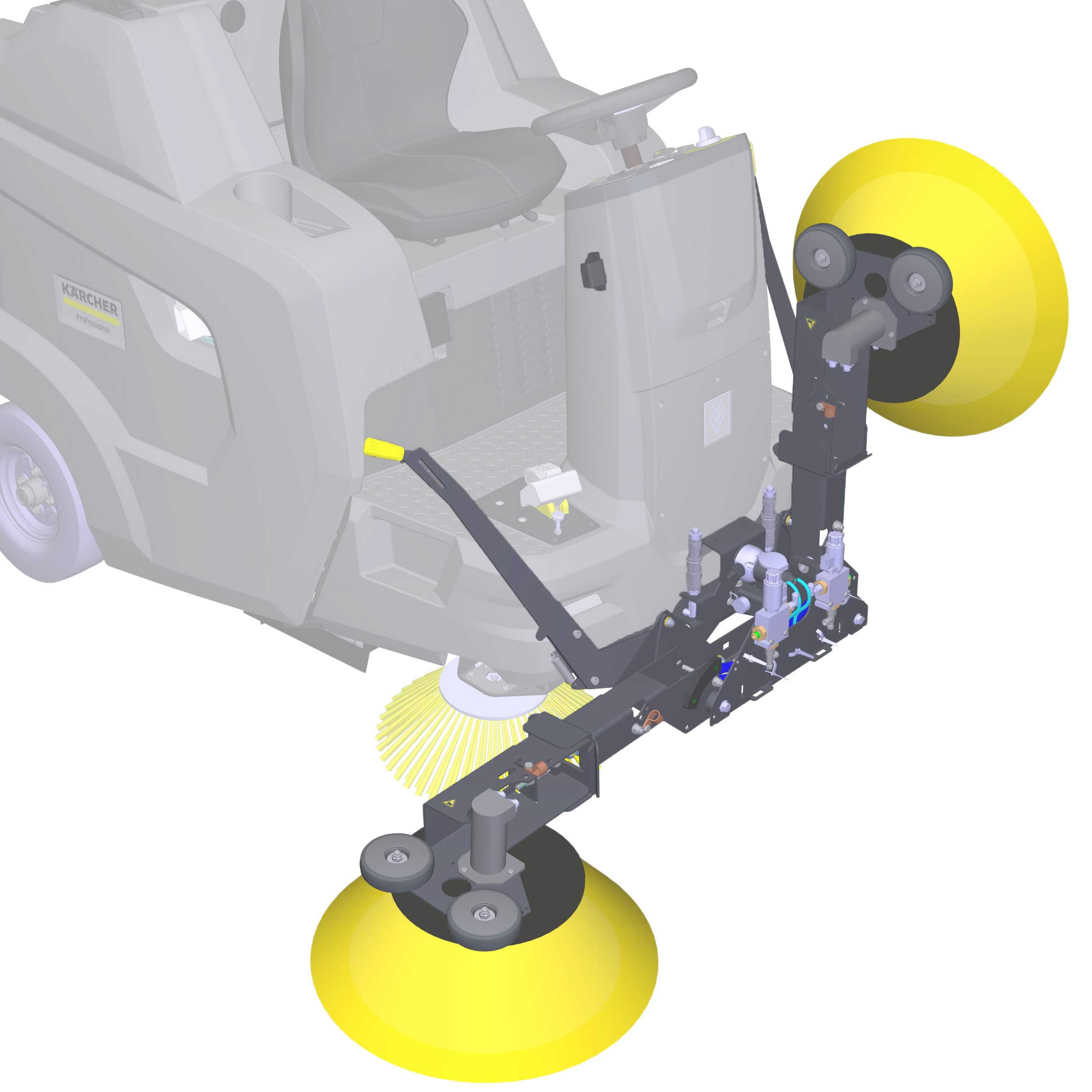 İlave yan süpürgelerin kullanımı sayesinde makinenin bir veya her iki tarafında çalışma genişliği arttırılabilir.