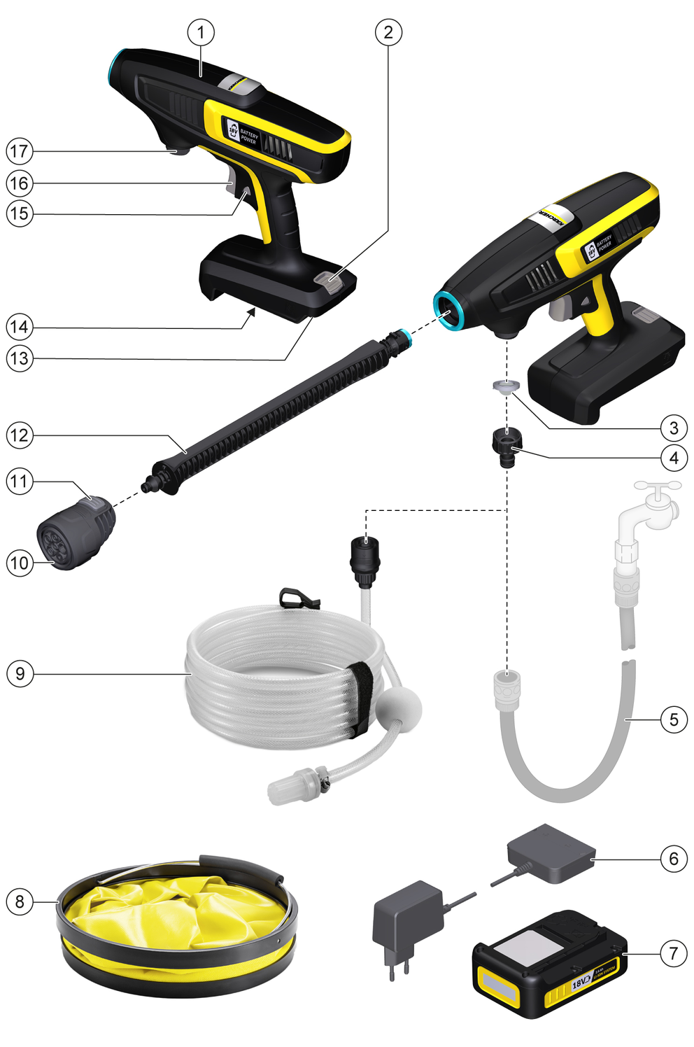 Cihazı yalnızca KÄRCHER 18 V Battery Power (+) sistemine ait akü paketleri ve şarj cihazlarıyla kullanın.