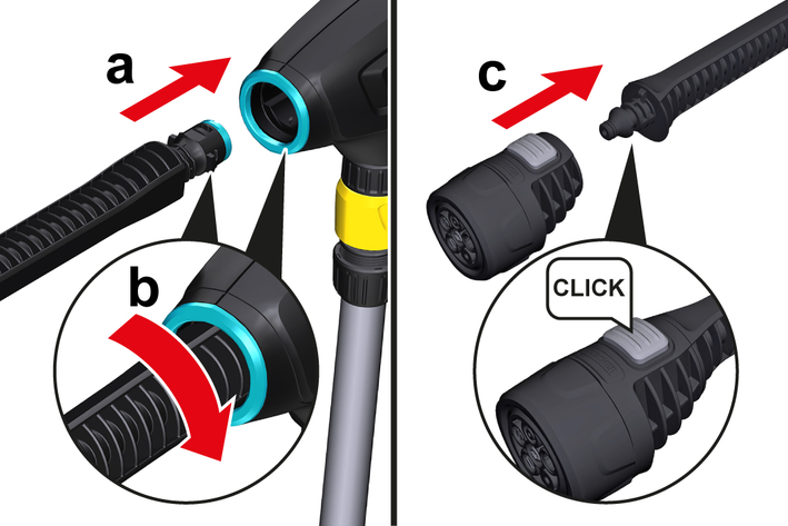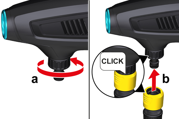 KÄRCHER vakum hortumu önceden takılmışsa: Kavramayı, su bağlantısına vidalayın.