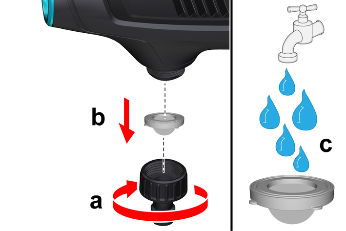 Cihaza geçmeli kavramaya (teslimat kapsamına dahil değildir) bir bahçe hortumu bağlayın: