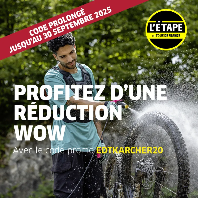 Pour sa 33ᵉ édition, l’Étape du Tour reliera Albertville à La Plagne : 131 km, 4 500 m de dénivelé et 5 ascensions spectaculaires au cœur des Alpes. Un défi mythique et l’occasion idéale pour tous les passionnés de cyclisme de découvrir nos solutions de nettoyage, parfaitement adaptées à l’entretien des vélos. Sur place, rendez-nous visite au village de l’Étape et testez nos nettoyeurs basse, moyenne et haute pression dans des conditions réelles. À distance, explorez notre sélection en ligne et trouvez la machine Kärcher qui répond à tous vos besoins.