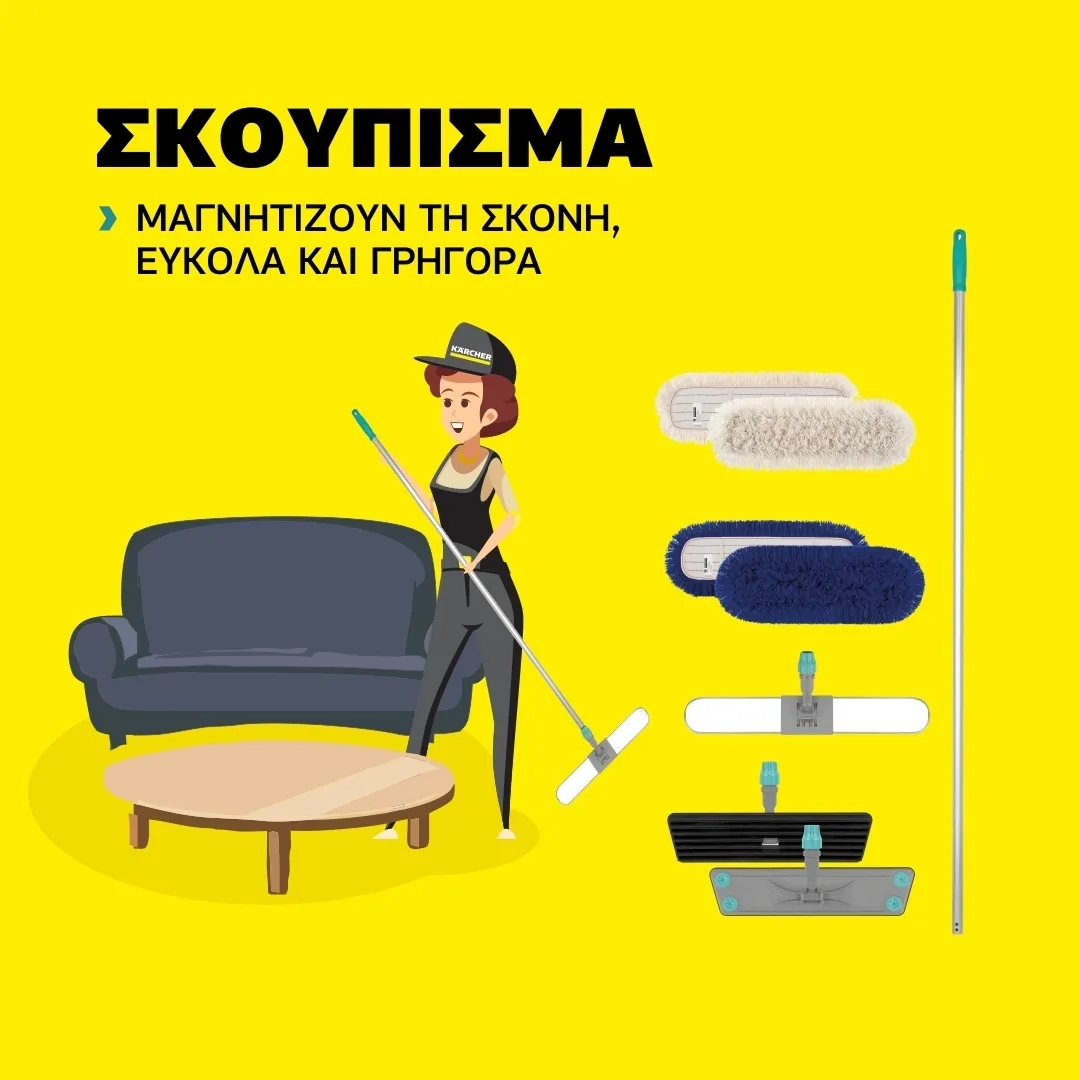 Το σκούπισμα γίνεται σημαντικά ευκολότερο με τη βοήθεια των ποιοτικών προϊόντων μας που είναι κατασκευασμένα από υψηλής ποιότητας, ανθεκτικά υλικά. Με τα νέα εργαλεία χειρωνακτικού καθαρισμού της νέας σειράς Kärcher X TTS, σκουπίζεις εύκολα & γρήγορα, μαγνητίζοντας τη σκόνη σε κάθε πέρασμα!