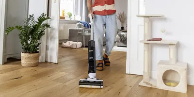 Our FCV 4 vacuum mop does all the thinking for your: its smart dirt sensor automatically detects the degree of soiling and optimally adjusts both the suction power and the amount of water. This means you get perfect cleaning results every time – with no manual readjustment needed.