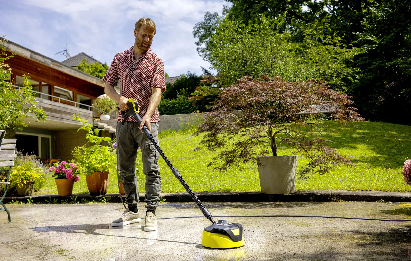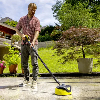 The T-Racer models are particularly suitable for the cleaning of large stone or wooden areas, as the distance of the cleaning nozzles to the ground can be individually adjusted. Also for smaller or twisty places, such as staircases, Kärcher has the right cleaning solution: thanks to the powerful combination of high-pressure jet and manual brush pressure, the power scrubbers are the perfect all-purpose weapon against dirt.