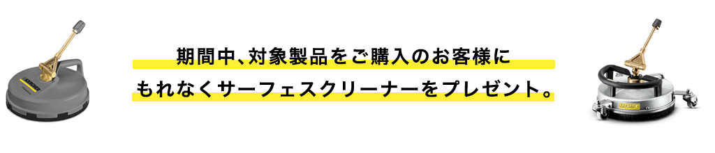 | キャンペーン内容 | 期間中、対象製品をご購入いただいた方にもれなくサーフェスクリーナーFR 30 PもしくはFR 30 Meをプレゼントいたします。 |