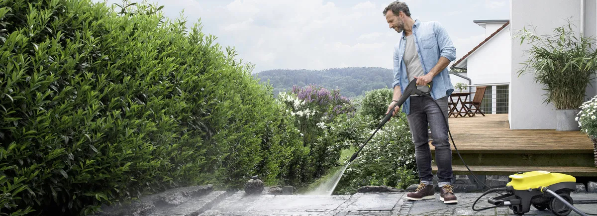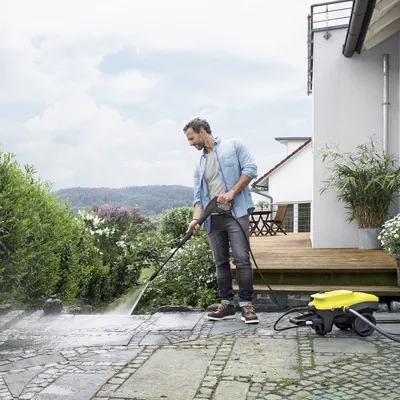 - Ustaw optymalne ciśnienie Kärcher K4 – w modelu Power Control wybierz poziom mocy na pistolecie, dopasowując go do rodzaju powierzchni.