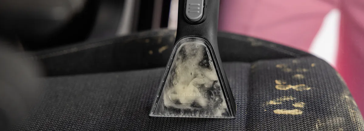 Marka Kärcher oferuje wiele niezawodnych modeli przeznaczonych do czyszczenia tapicerki samochodowej. Ciekawą propozycją jest np. bezprzewodowy odkurzacz SE 3-18 Compact. Został zaprojektowany z myślą o mobilnym, szybkim i skutecznym czyszczeniu wnętrz pojazdów. Ma kompaktowe wymiary i jest zasilany akumulatorem – dzięki temu można go wygodnie używać nawet w trudno dostępnych miejscach, bez konieczności podłączania do prądu.