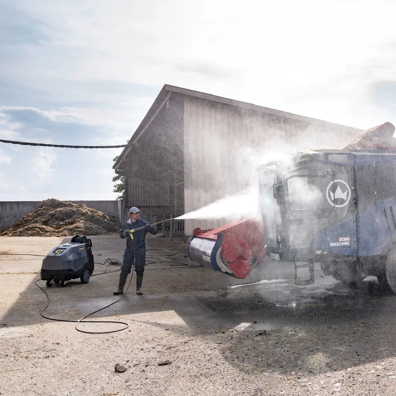 - HDS 9/20-4 M – wydajna myjka z mocnym silnikiem i funkcją eco!efficiency, idealna do czyszczenia dużych maszyn i ciągników.