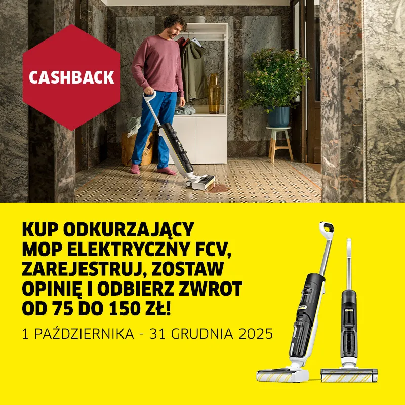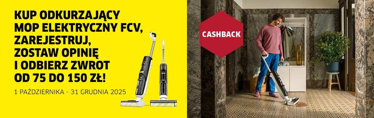 Podziel się opinią o urządzeniu na www.karcher.pl, stronie sprzedawcy lub stronie porównywarki cenowej. Opinia powinna zawierać min. 250 znaków oraz hasztagi: #PromocjaKarcherFCVCashbackZaOpinie #OpiniaMotywowanaNagroda