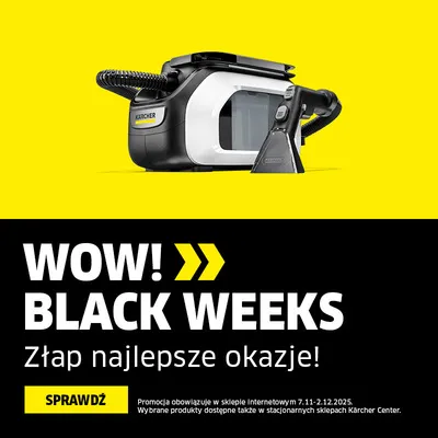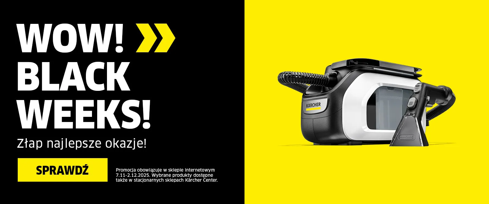 W Kärcher promocja na odkurzacz piorący Black Friday & Black Weeks w 2025 zaczyna się wcześniej. W sklepie internetowym Kärcher czarny piątek przypada na 7 listopada. Promocja na odkurzacz piorący do dywanów, wykładzin i tapicerki Kärcher trwa do zakończenia black weeks w dniu 2 grudnia. Promocja na odkurzacz piorący Black Friday & Black Weeks 2025 swym zasięgiem czasowym obejmuje również cyber monday czyli cyfrowy poniedziałek.