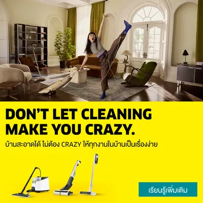 เครื่องดูดฝุ่นจากคาร์เชอร์ ผสมผสานการออกแบบเข้ากับพลังดูดสูงสุด เข้ากับชีวิตในปัจจุบันและความคล่องตัว ไม่ว่าจะอาศัยอยู่ในคอนโด อาคาร หรือบ้าน คาร์เชอร์ก็มีเครื่องดูดฝุ่นที่เหมาะสมกับความต้องการที่หลากหลาย